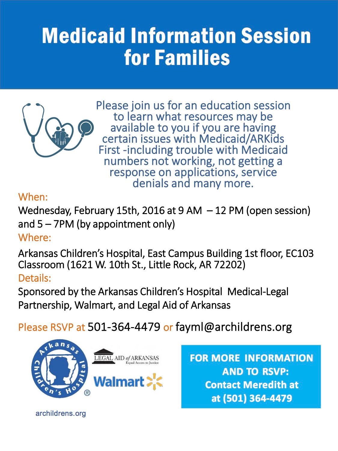 Details: Sponsored by the Arkansas Children's Hospital Medical-Legal Partnership, Walmart, and Legal Aid of Arkansas.